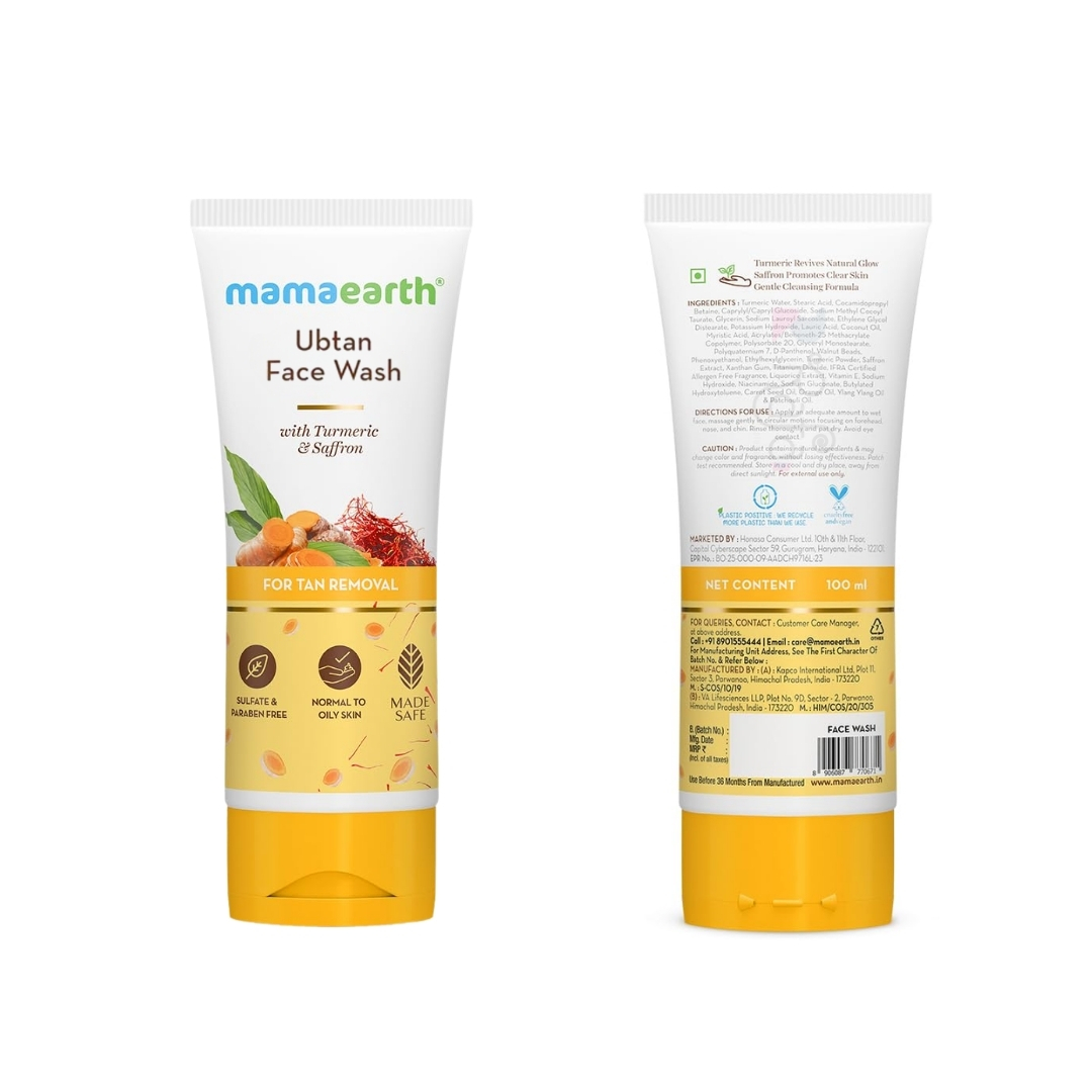 - Crafted to give you glowing skin, Mamaearth Ubtan Face Wash is enriched with the natural goodness of Turmeric and Saffron.