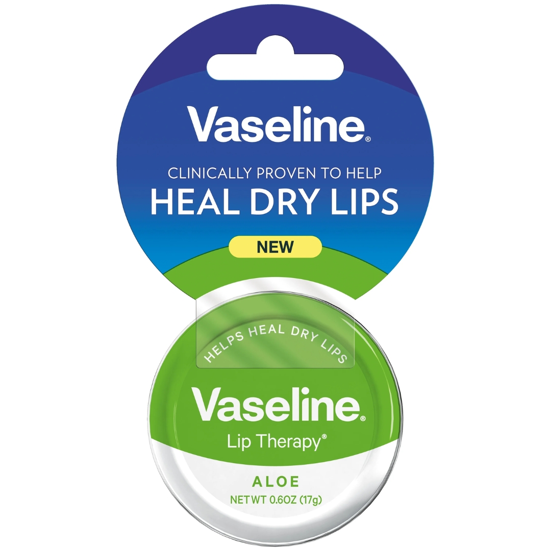 - The Vaseline® Lip Therapy® Aloe Tin, made with aloe vera and Vaseline® Jelly, provides long-lasting moisturization to help heal dry lips. Its lightweight formula is ideal for applying to your lips daily.